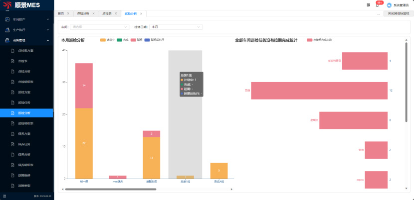 建立自動(dòng)化點(diǎn)檢系統(tǒng),每日定時(shí)生成巡檢任務(wù),通過(guò)物聯(lián)網(wǎng)實(shí)時(shí)監(jiān)測(cè)設(shè)備運(yùn)行狀態(tài),應(yīng)用終端設(shè)備進(jìn)行機(jī)臺(tái)巡檢,通過(guò)可視化報(bào)表查看設(shè)備的運(yùn)行狀態(tài)/點(diǎn)檢狀態(tài);