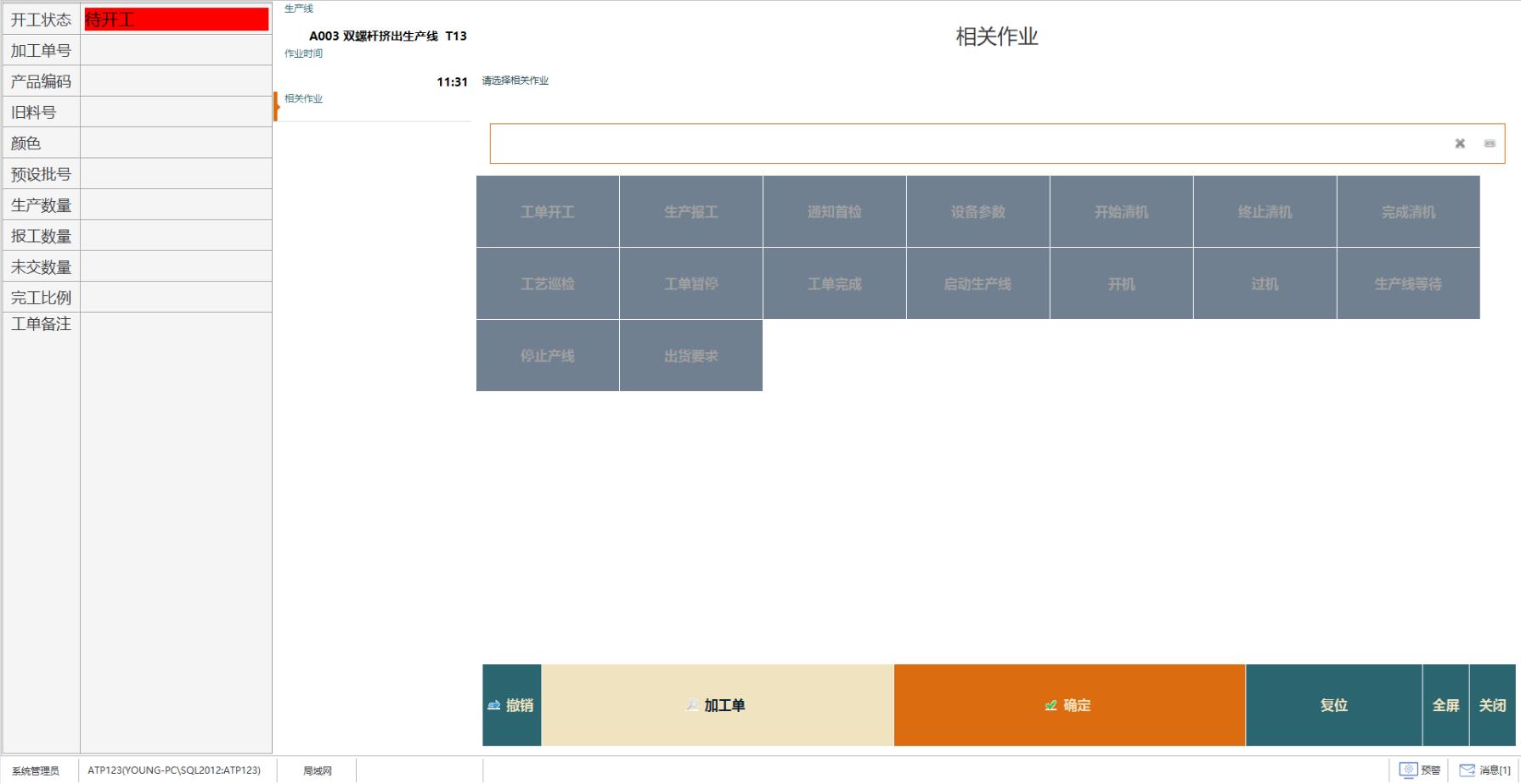 順景S9 ERP和擠出車間密煉機(jī)等產(chǎn)線設(shè)備建立通信通道,系統(tǒng)會(huì)按照上一單的生產(chǎn)顏色給出清機(jī)級(jí)別、清機(jī)部位及清機(jī)時(shí)間,并在系統(tǒng)種監(jiān)控和記錄開(kāi)始清機(jī)、完成清機(jī)、清機(jī)人、清機(jī)點(diǎn)位、清機(jī)時(shí)間等數(shù)據(jù),清機(jī)完成后,只要在產(chǎn)線控制頁(yè)面點(diǎn)“開(kāi)工”,即可導(dǎo)入開(kāi)機(jī)參數(shù),由系統(tǒng)調(diào)取設(shè)備參數(shù)庫(kù)調(diào)好機(jī)臺(tái),并監(jiān)控設(shè)備運(yùn)行,如有參數(shù)超出正常范圍,S9ERP會(huì)進(jìn)行報(bào)警并提示是否中止產(chǎn)線運(yùn)行,系統(tǒng)也每半小時(shí)生成一次品質(zhì)巡檢、工藝巡檢任務(wù),并抓取機(jī)器運(yùn)行各項(xiàng)參數(shù)數(shù)據(jù)保存到系統(tǒng),這樣每一訂單生產(chǎn)過(guò)程的設(shè)備運(yùn)行參數(shù),有否異常等生產(chǎn)記錄都會(huì)保存在系統(tǒng)中,實(shí)現(xiàn)了完整的品質(zhì)追溯和生產(chǎn)過(guò)程監(jiān)控。