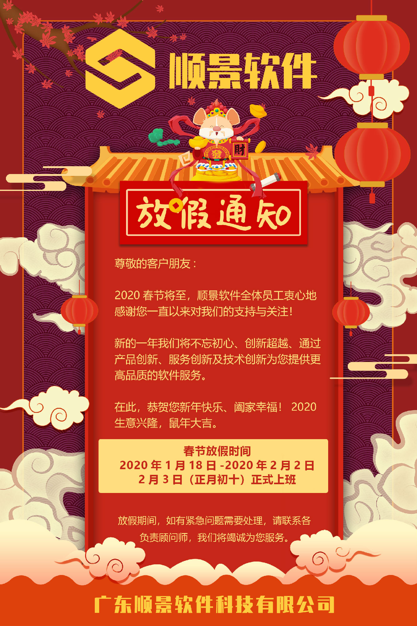 您好,2020年春節(jié)假期臨近,感謝您一直以來對順景軟件的陪伴與支持,提前祝您新春快樂!